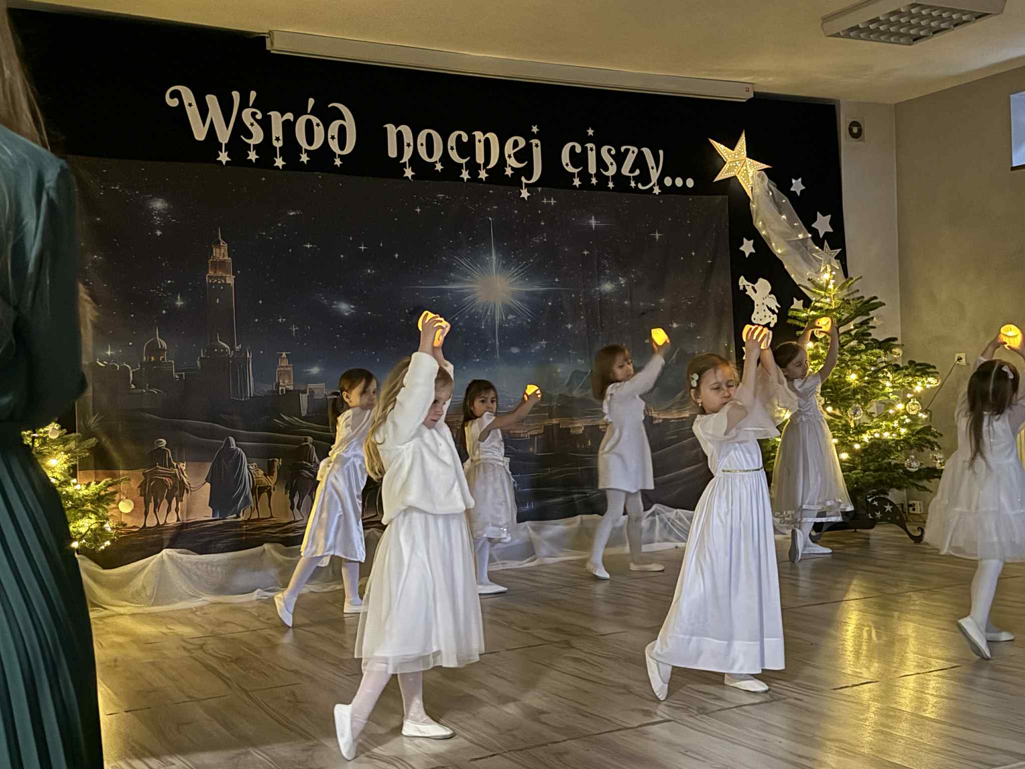 Nad przygotowaniem jasełek czuwały wychowawczynie grupy: Pani Gosia Pruś, Pani Izabela Stężalska oraz Pani Ewa Erazmus, które z wielkim sercem i cierpliwością prowadziły dzieci podczas prób, dbając o każdy szczegół przedstawienia. Dzięki ich pracy oraz zaangażowaniu dzieci i rodziców mogły zaprezentować swoje umiejętności i poczuć prawdziwą wspólnotę występu.