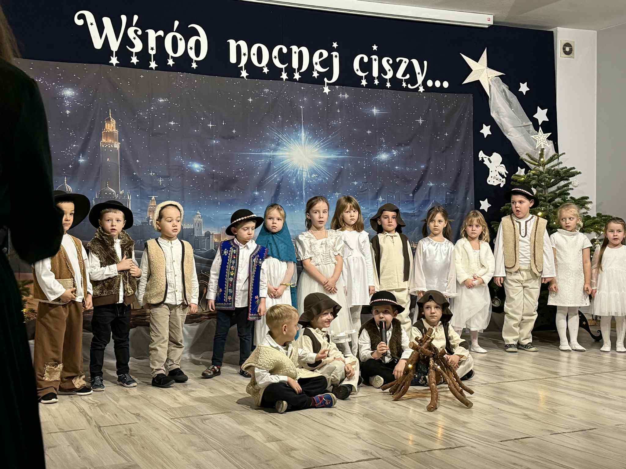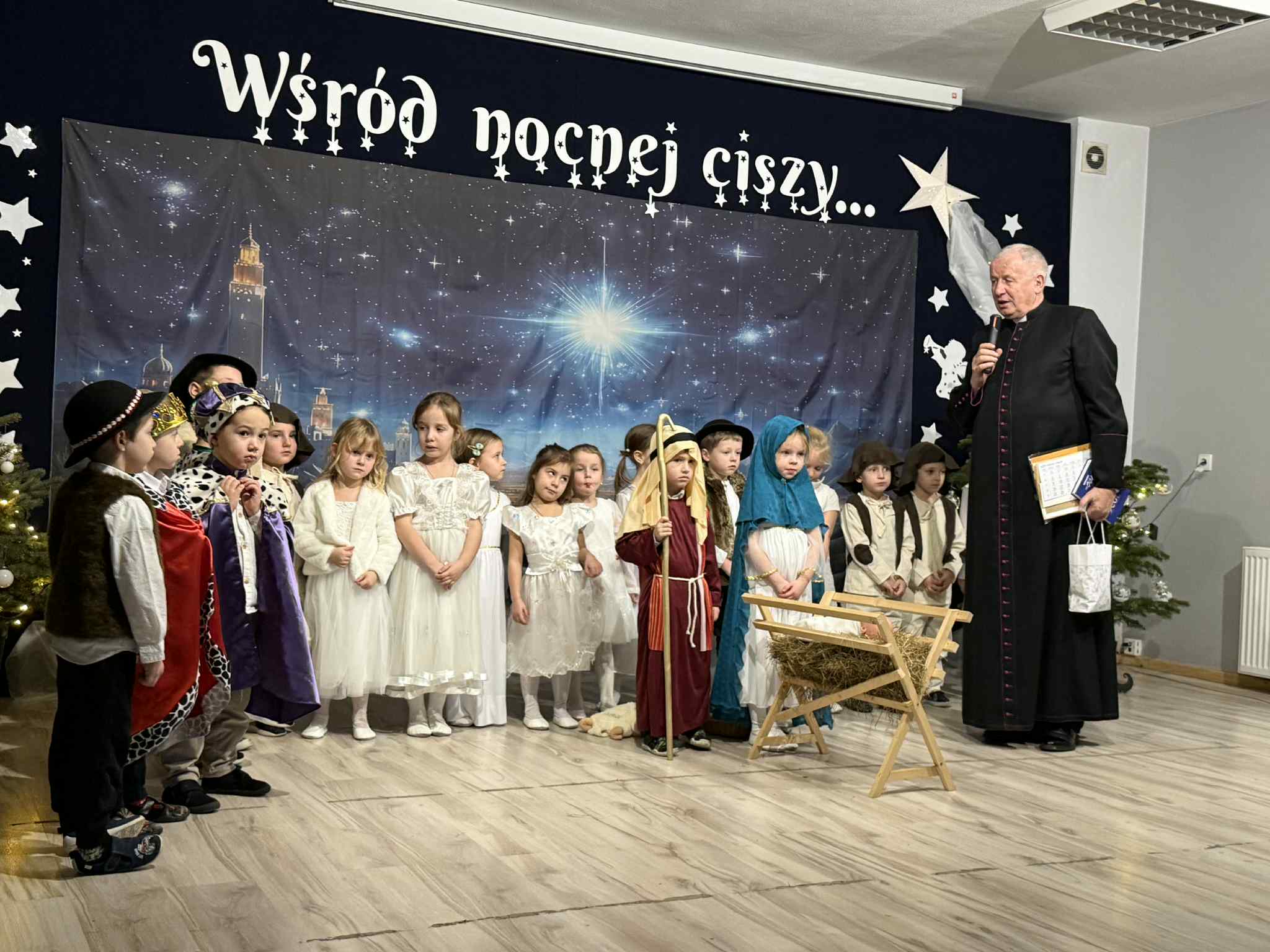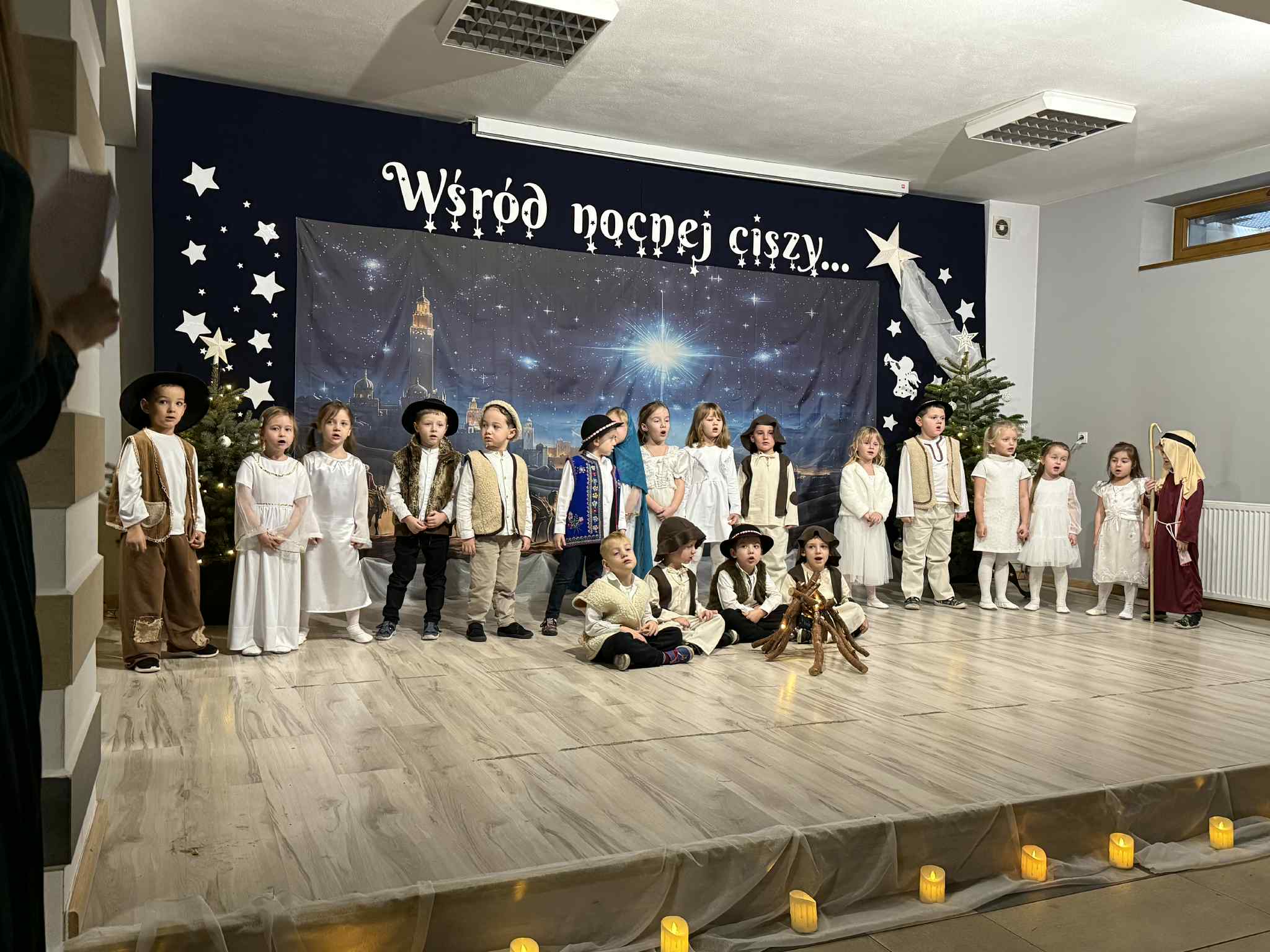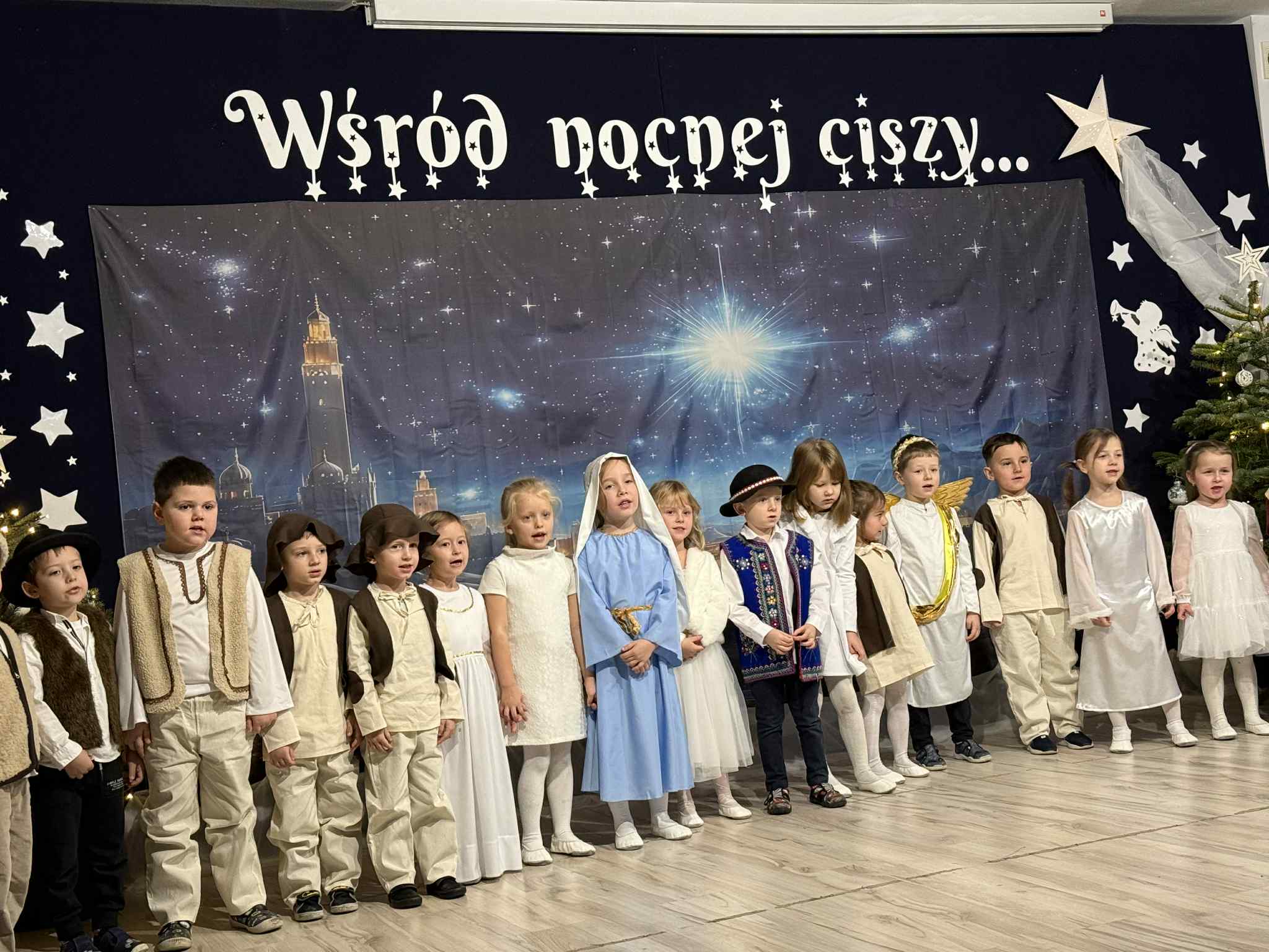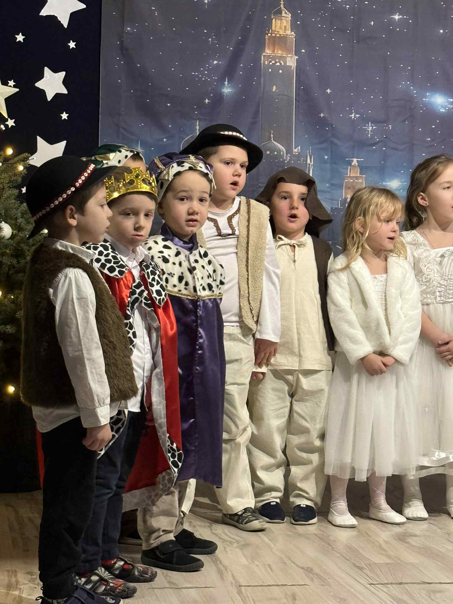 Przedstawienie przygotowały dzieci z grupy Pszczóki, które z ogromnym zaangażowaniem i untuzjazmem zaprezentowały historię narodzin Dzieciątka Jezus. Mali wcielili sie w rolę Maryi, Józefa, aniołów, pasterzy oraz Trzech Króli, zachwycając publiczność pięknymi strojami, śpiewem i odwagą sceniczną.