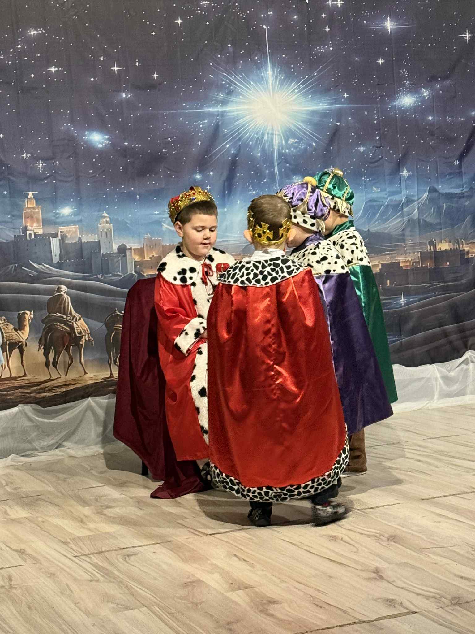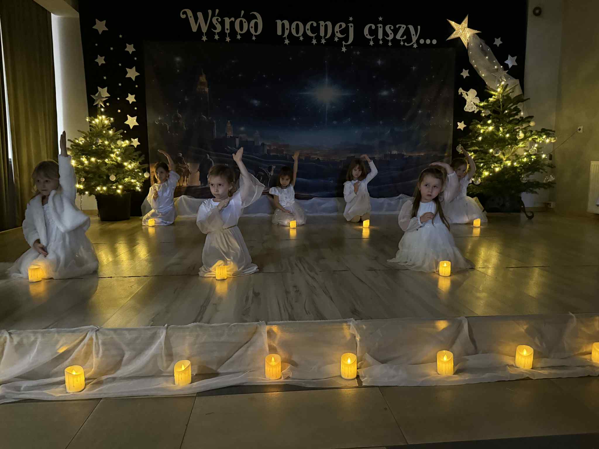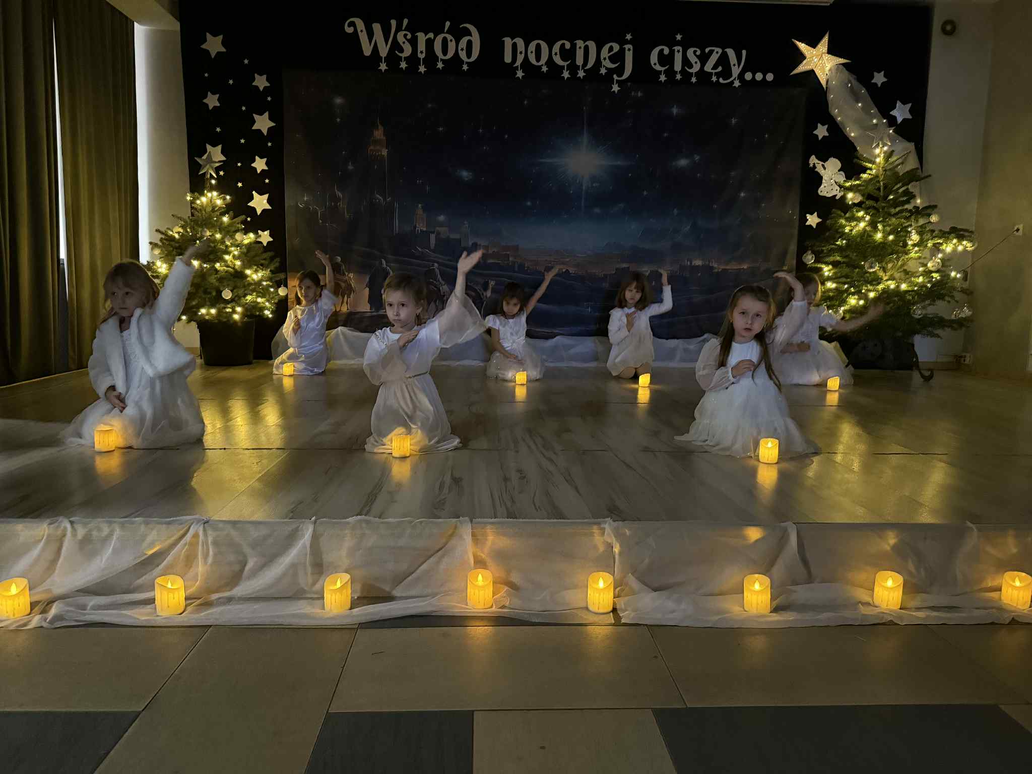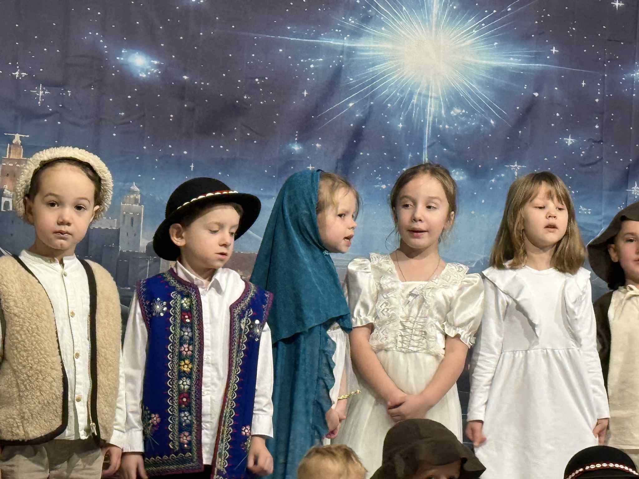 Przedstawienie przygotowały dzieci z grupy Pszczóki, które z ogromnym zaangażowaniem i untuzjazmem zaprezentowały historię narodzin Dzieciątka Jezus. Mali wcielili sie w rolę Maryi, Józefa, aniołów, pasterzy oraz Trzech Króli, zachwycając publiczność pięknymi strojami, śpiewem i odwagą sceniczną.