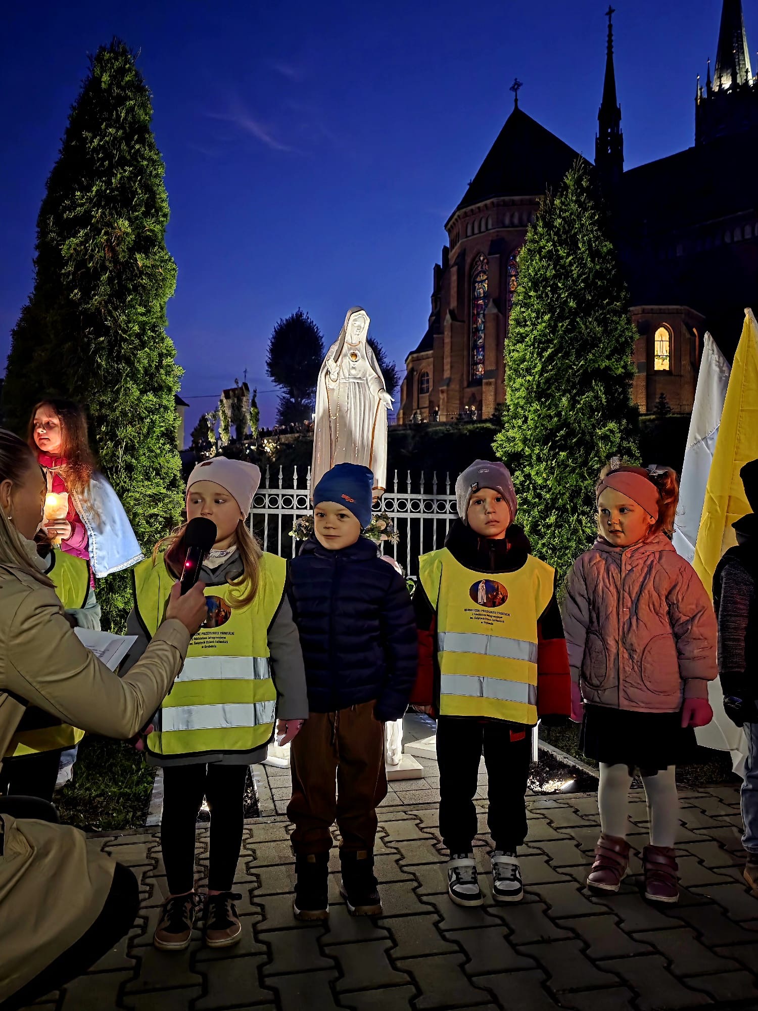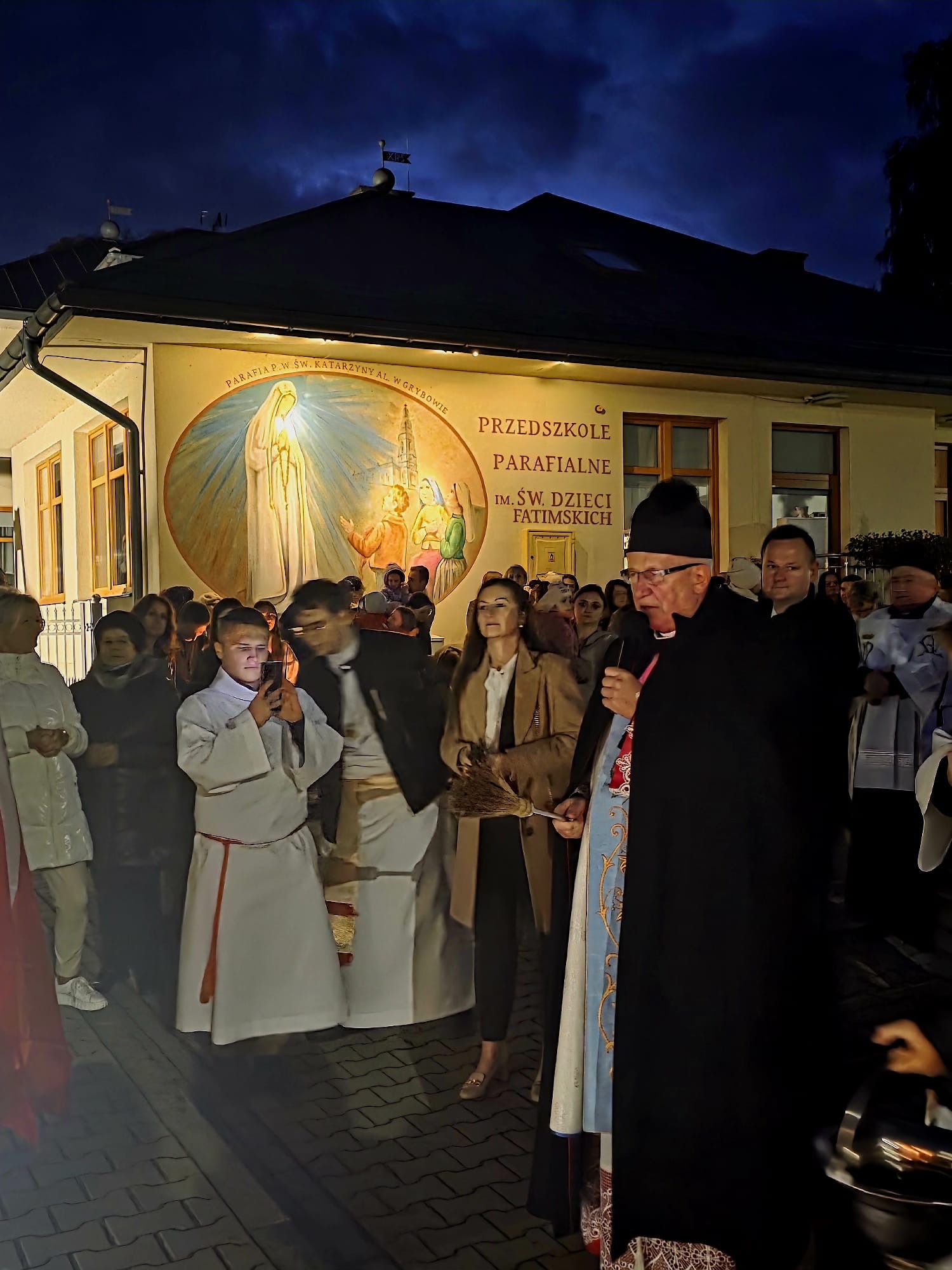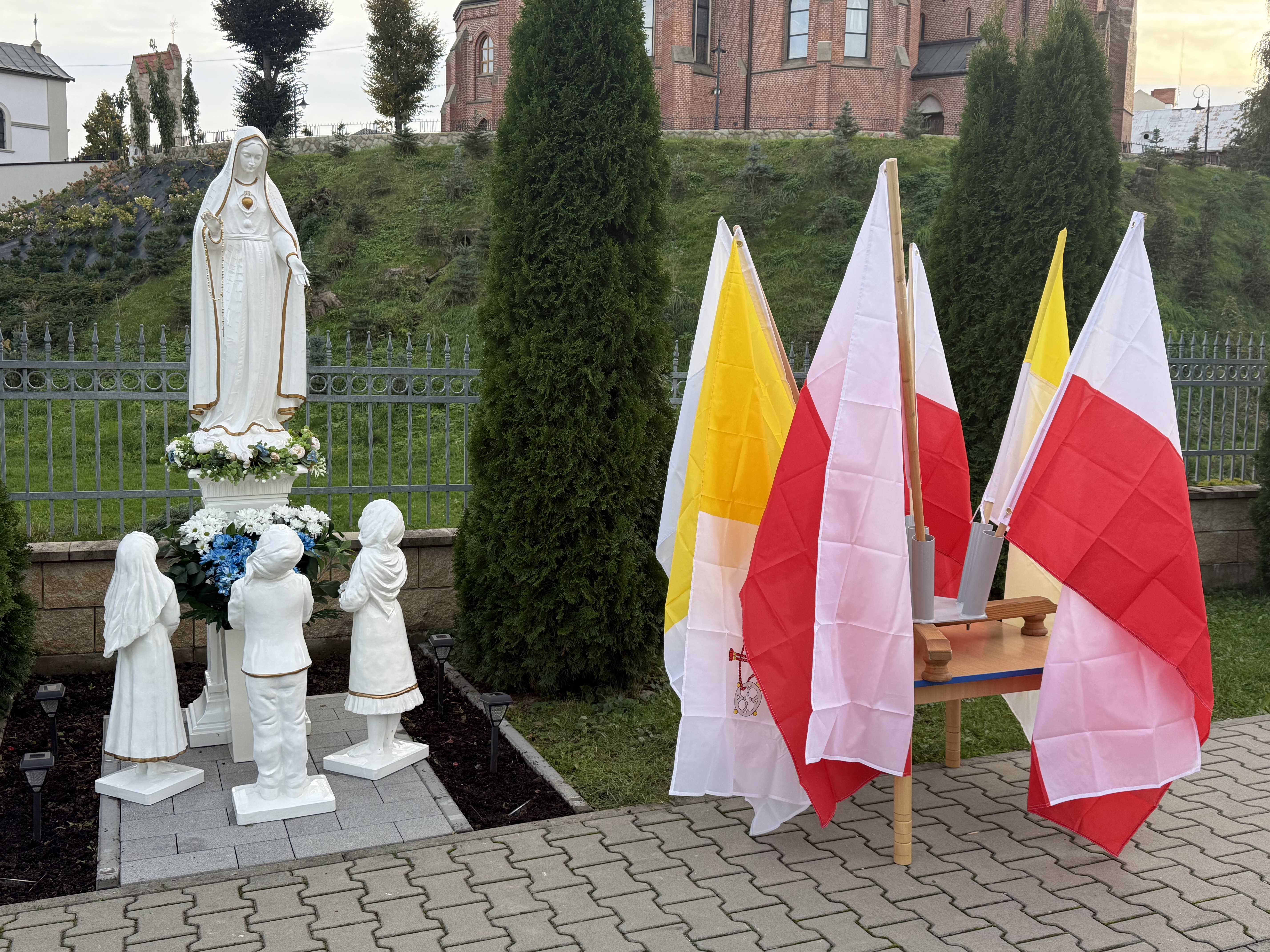 13 października 2025 r. w uroczystość wspomnienia kolejnego objawienia fatimskiego miało miejsce piękne wydarzenie dla naszego przedszkola – poświecenie nowej figury Matki Bożej Fatimskiej i świętych Dzieci Fatimskich.