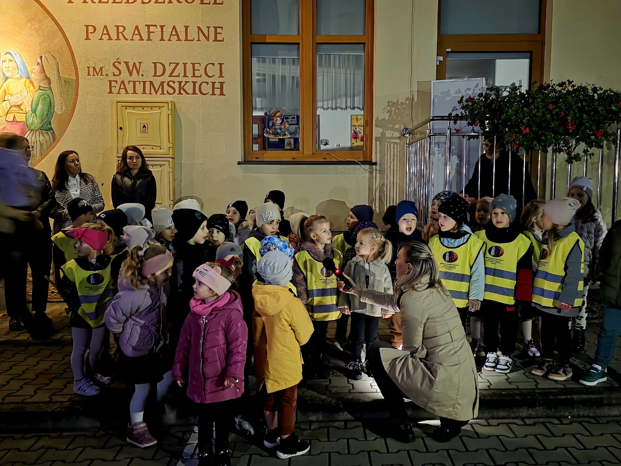Podczas uroczystości licznie zgromadzeni wierni uczestniczyli w pięknej liturgii Mszy Świętej Fatimskiej, którą koncelebrował ks. Proboszcz Ryszard Sorota. Na nabożeństwie byli obecni wszyscy pracownicy przedszkola, Rada Rodziców oraz przedszkolaki wraz z rodzicami. Podczas kazania Ksiądz Proboszcz nawiązał do objawień fatimskich w kontekście przeżywanego Roku Jubileuszowego. Podkreślał szczególne znaczenie i rolę Maryi w dziele zbawienia świata. Za wzór do naśladowania dla najmłodszych postawił święte dzieci z Fatimy, które w duchu pokory i zawierzenia poszły za Maryją i były świadkami wielkich wydarzeń. Nie sposób pominąć tutaj roli przedszkola w dziele kształtowania najmłodszego pokolenia. Kaznodzieja wspomniał, że przedszkole powstało w setną rocznicę objawień fatimskich i służy wychowaniu i katolickiemu formowaniu dzieci już od najmłodszych lat. Nade wszystko wspiera rodzinę w trudzie wychowania