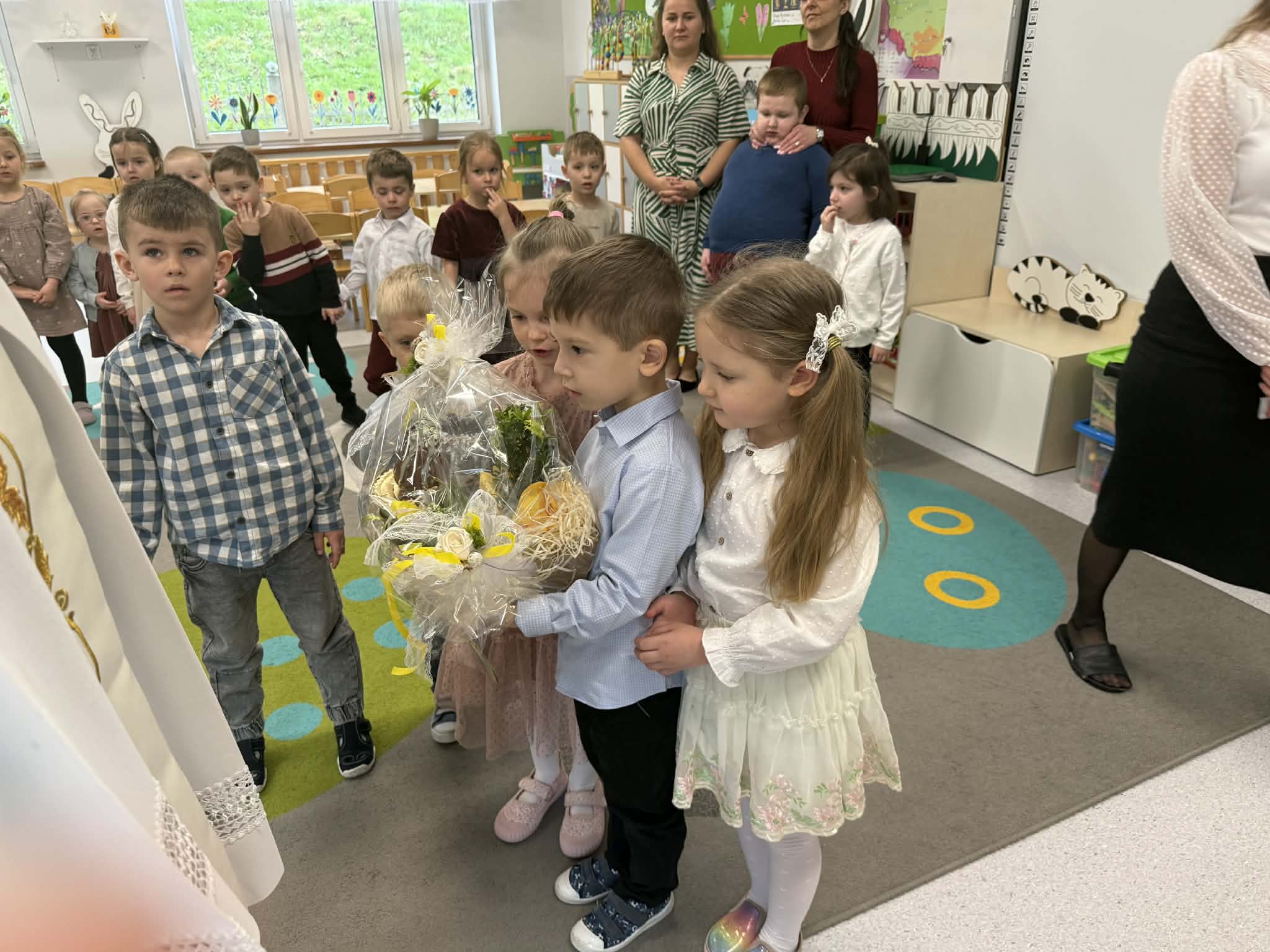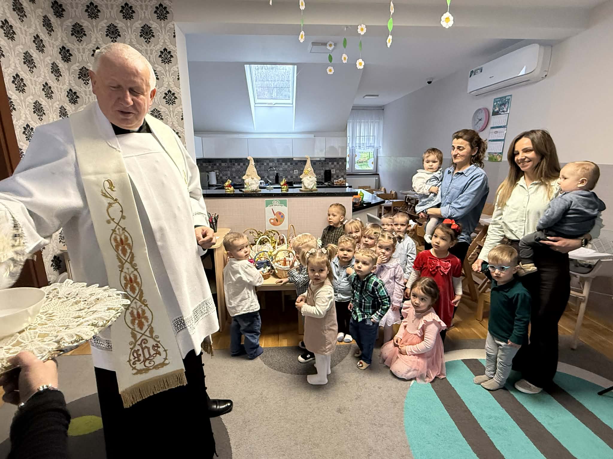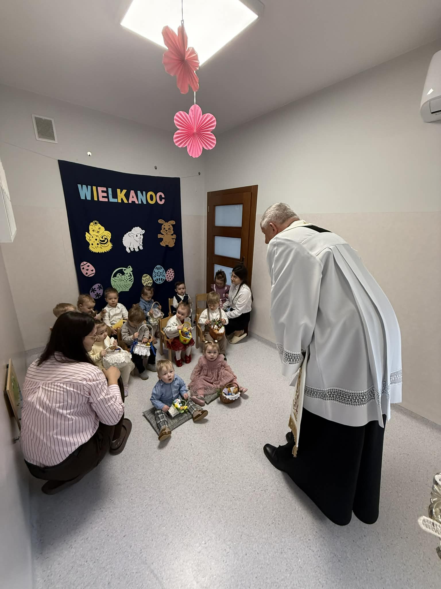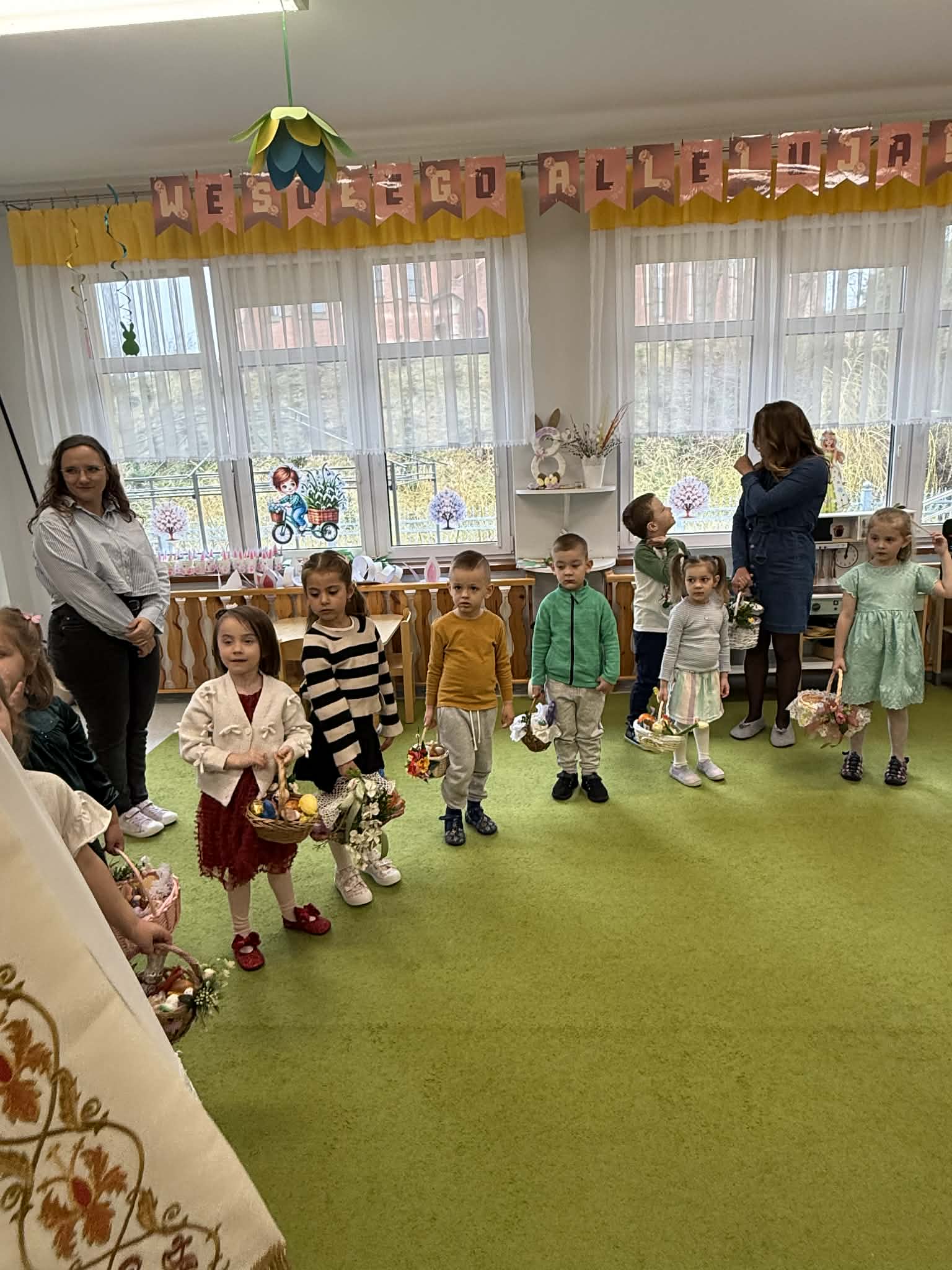 W atmosferze radości i przygotowań do nadchodzących Świąt Wielkanocnych w naszym przedszkolu parafialnym odbyło się uroczyste poświęcenie koszyczków z pokarmami. Dzieci, ubrane odświętnie, przyniosły pięknie przygotowane koszyczki wielkanocne. Nie zabrakło w nich tradycyjnych pokarmów, takich jak jajka, chleb, kiełbasa czy baranek - symbolizujących życie, dostatek i zwycięstwo Chrystusa nad śmiercią.